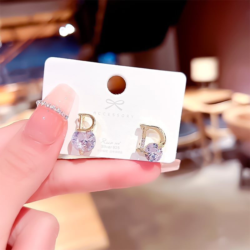 Dモチーフの美しいラインに輝くCZダイヤが映える上品なピアス。